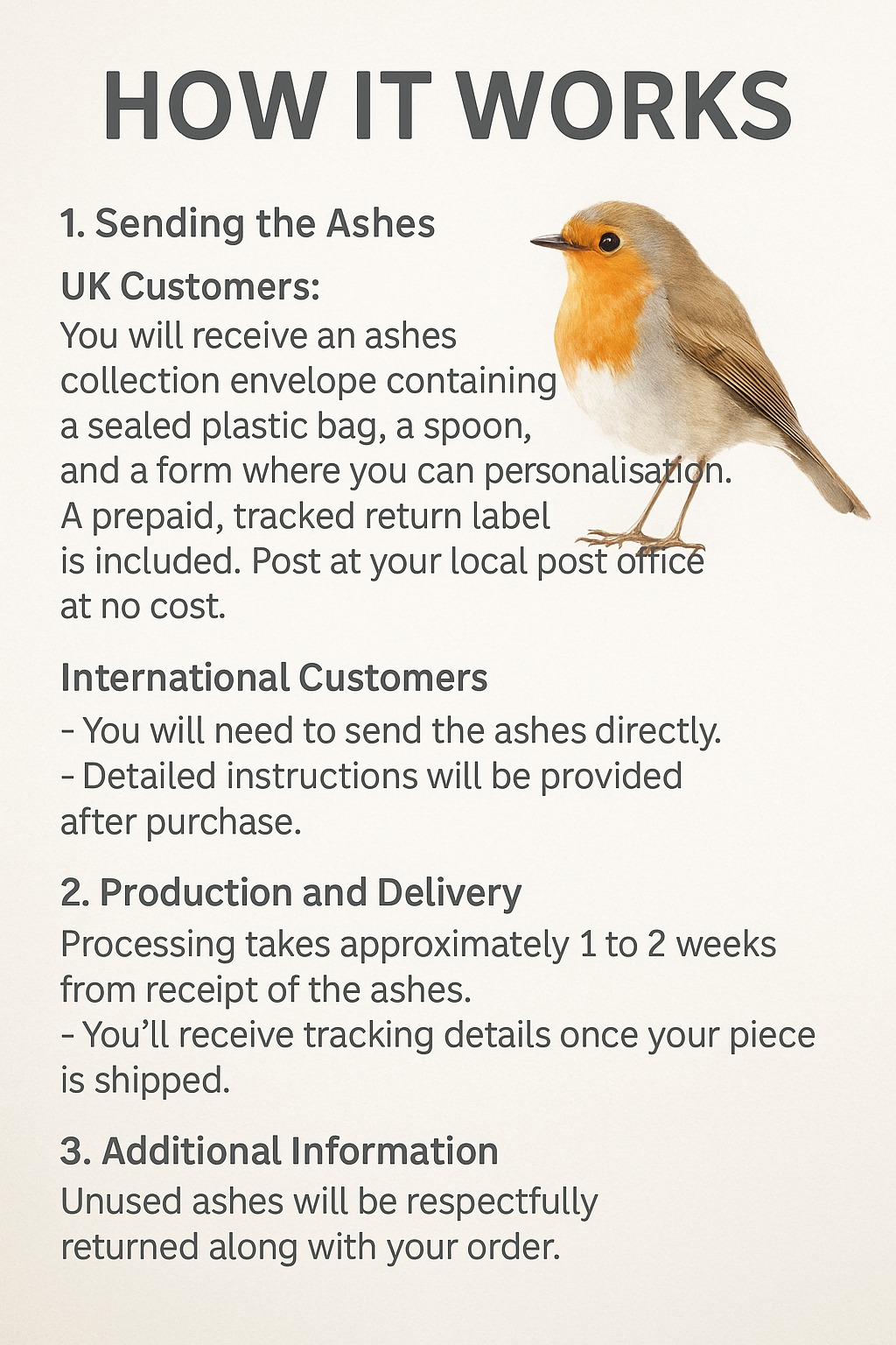 - Unused ashes will be respectfully returned along with your order.