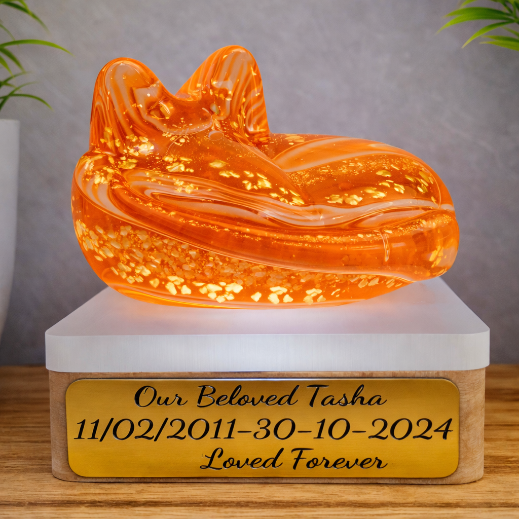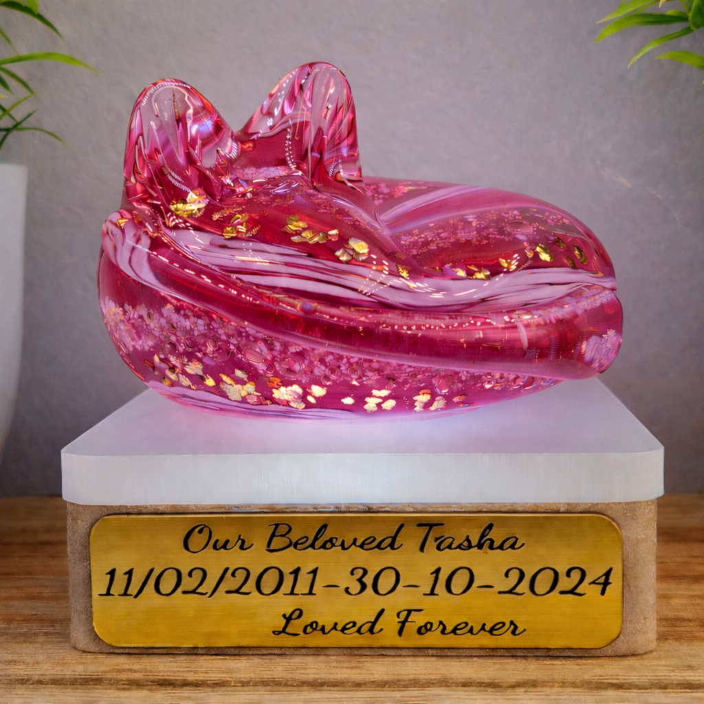 This handmade glass cat memorial is a beautiful tribute to your beloved pet, designed to honour their memory with a lasting keepsake.