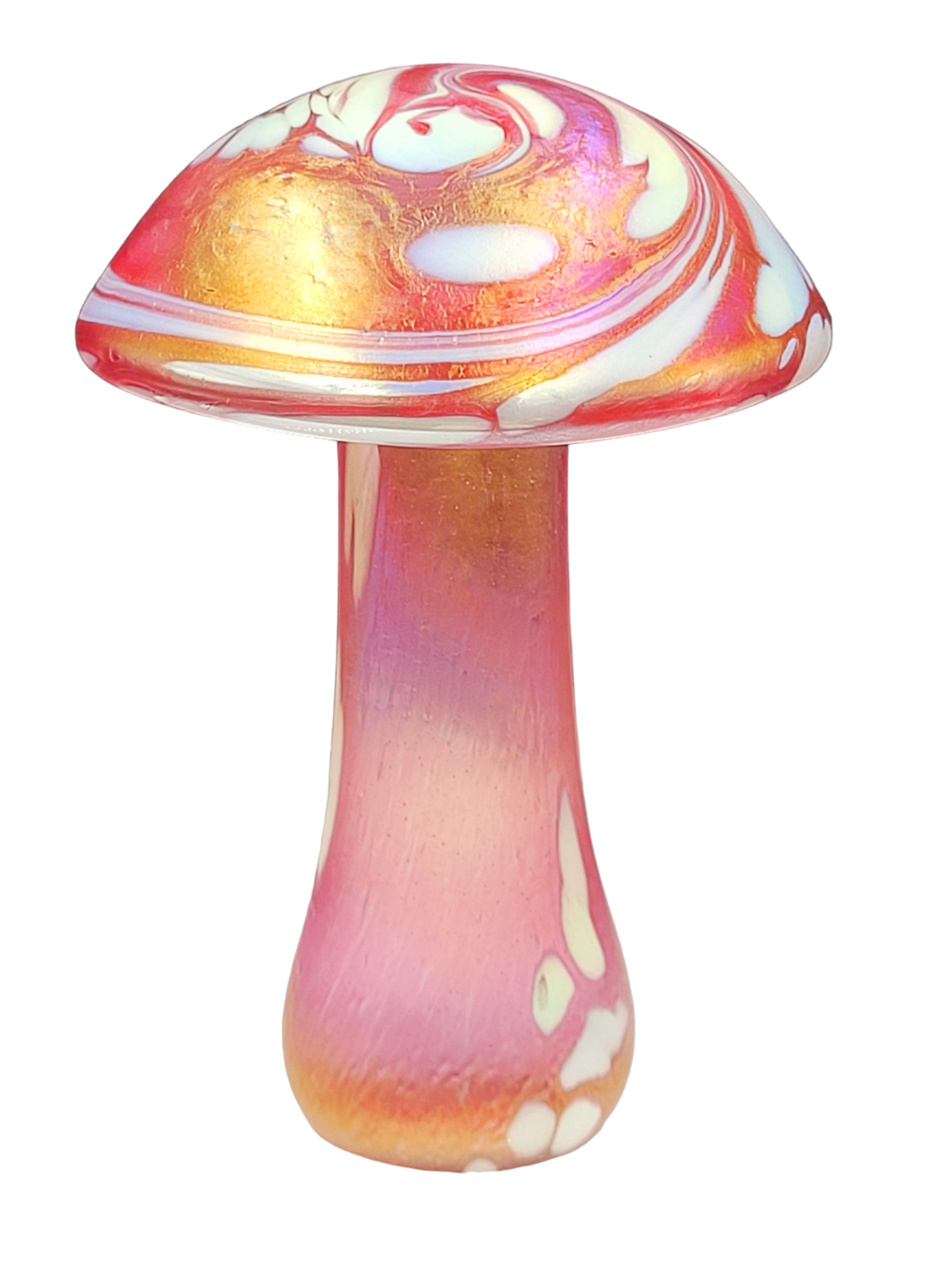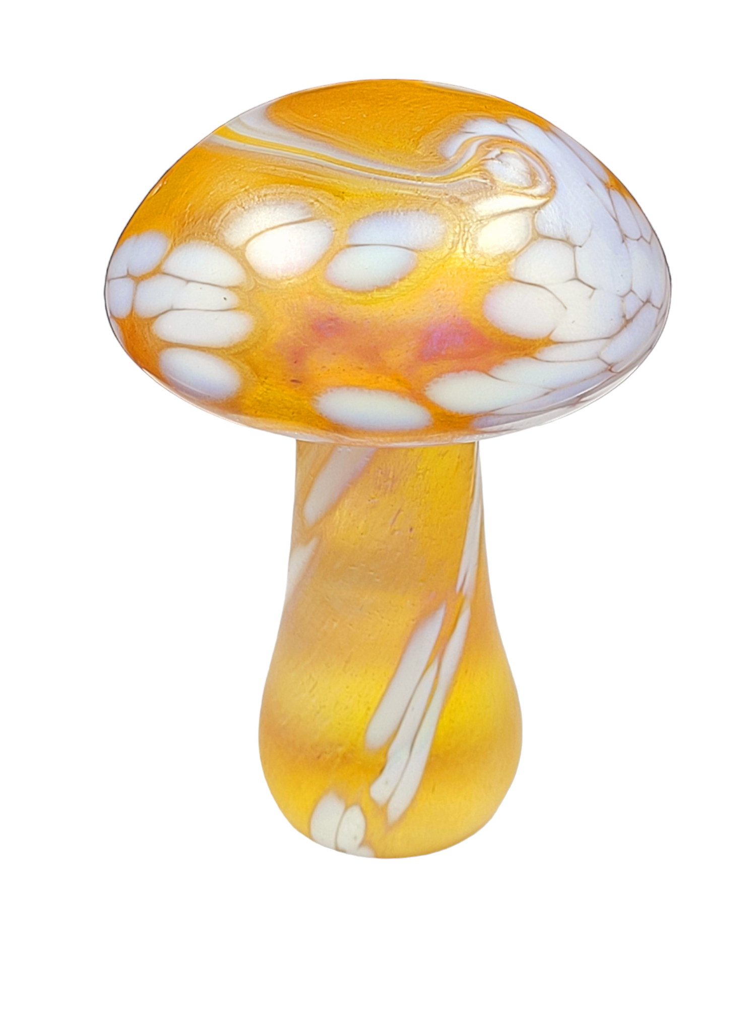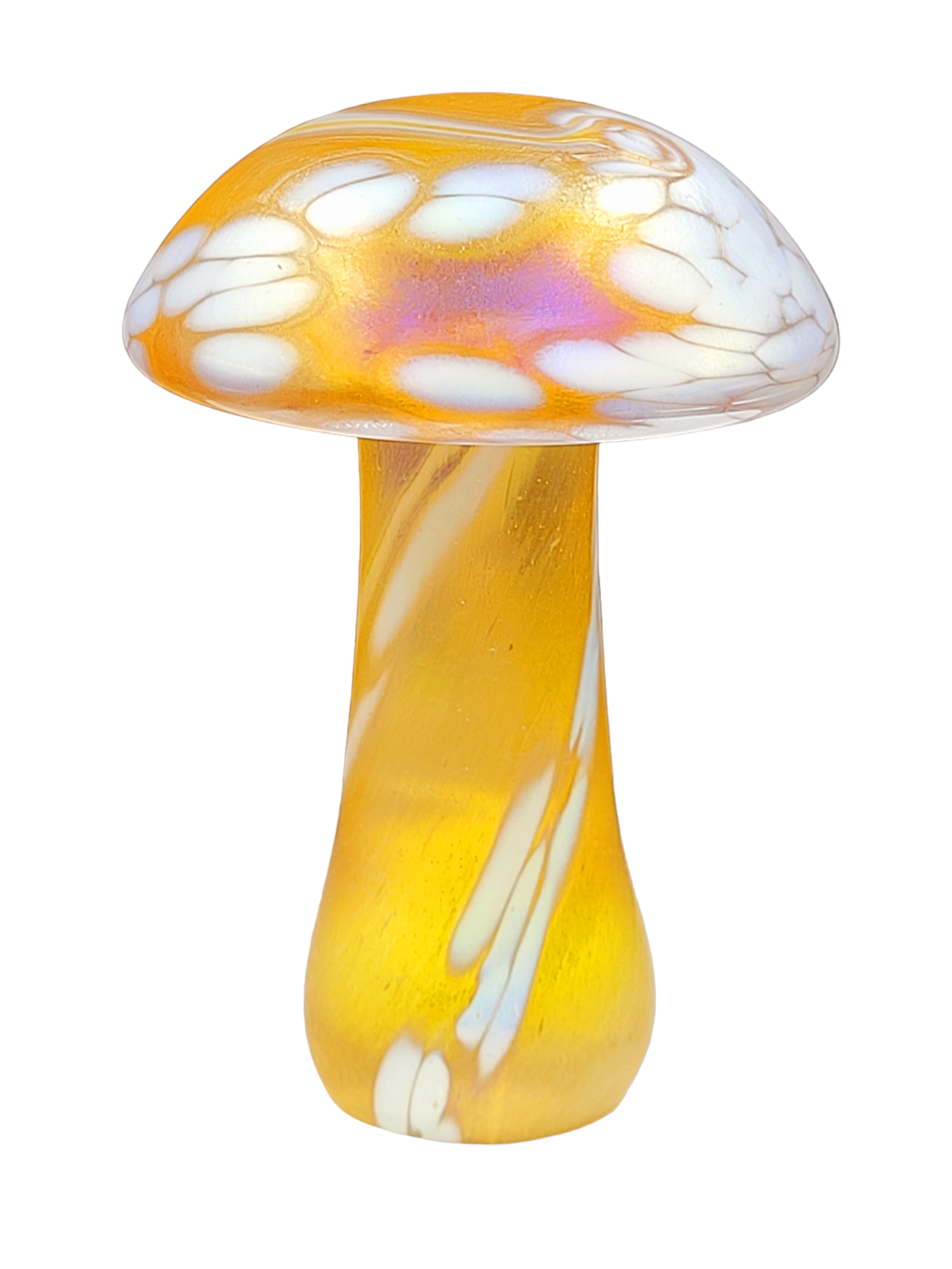 Introducing our exquisite handblown art glass mushroom ornament. Available in a variety of captivating colours, each piece is meticulously finished off with a mesmerizing iridescent glaze, adding a touch of enchantment to any space