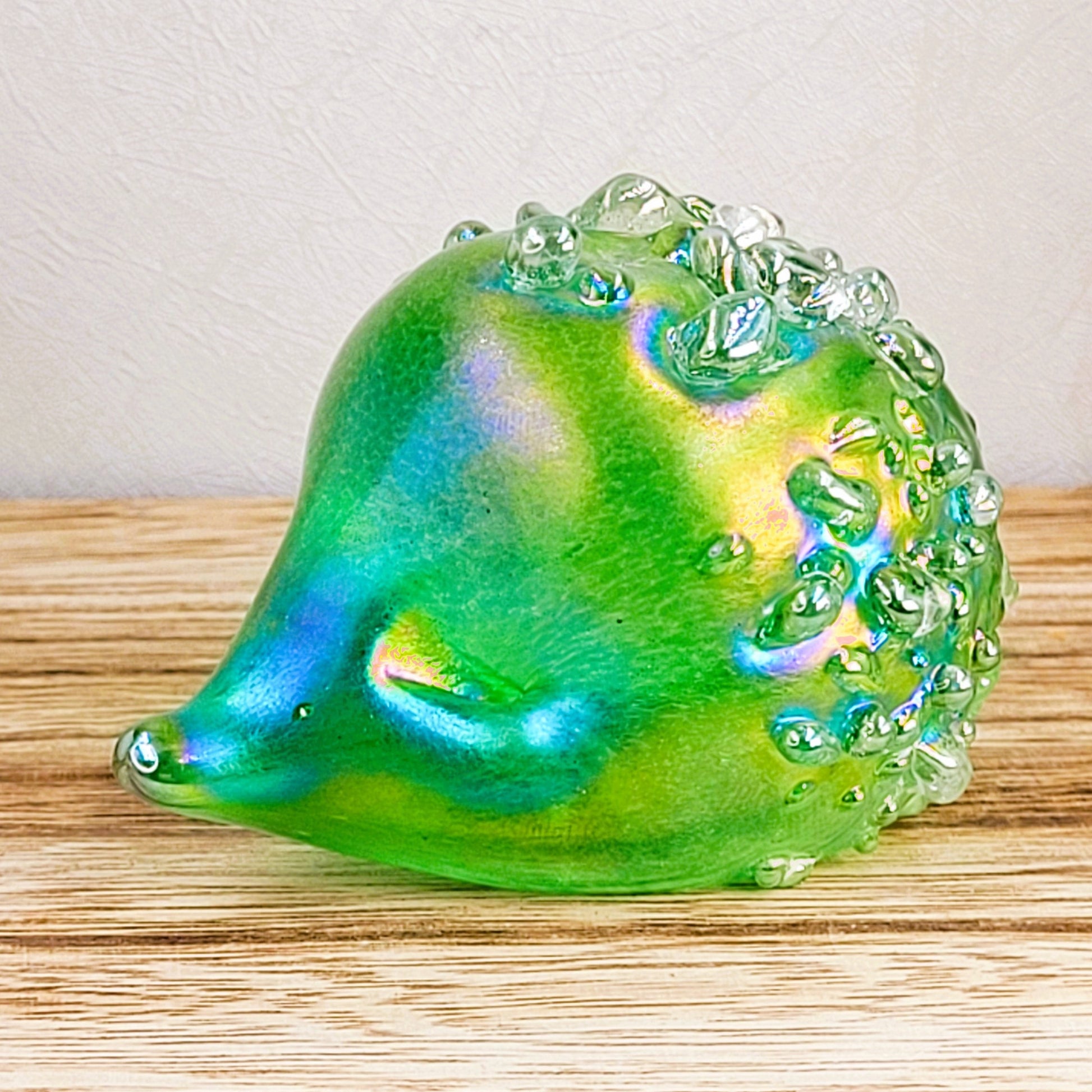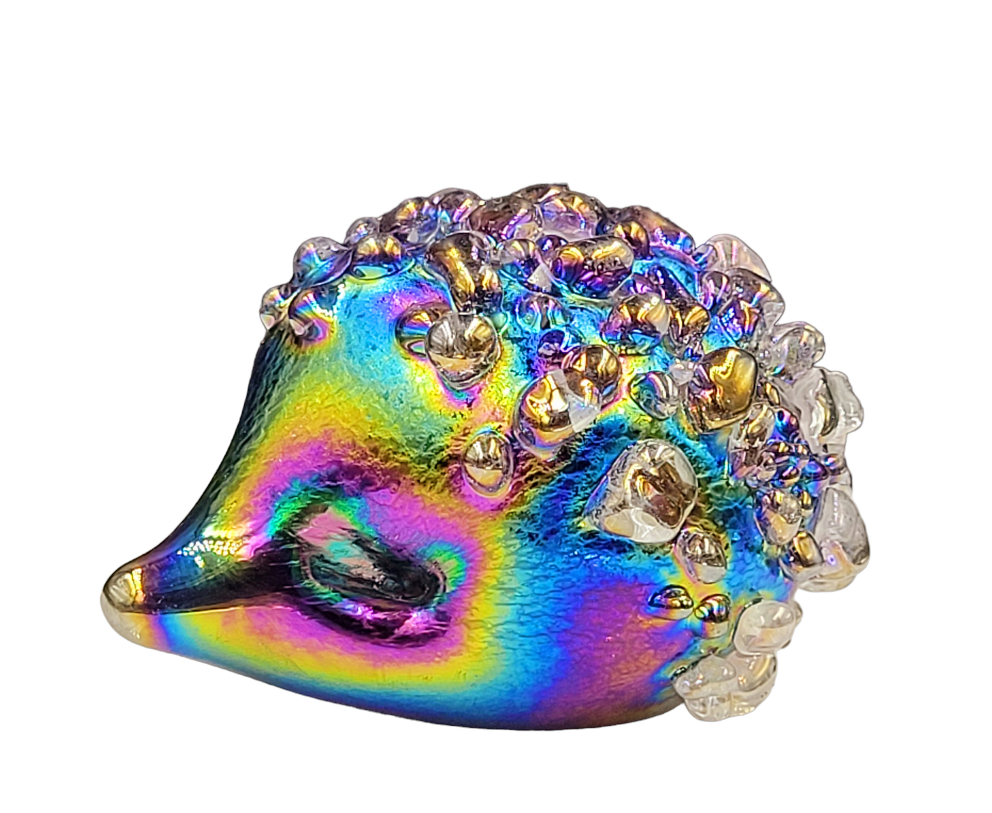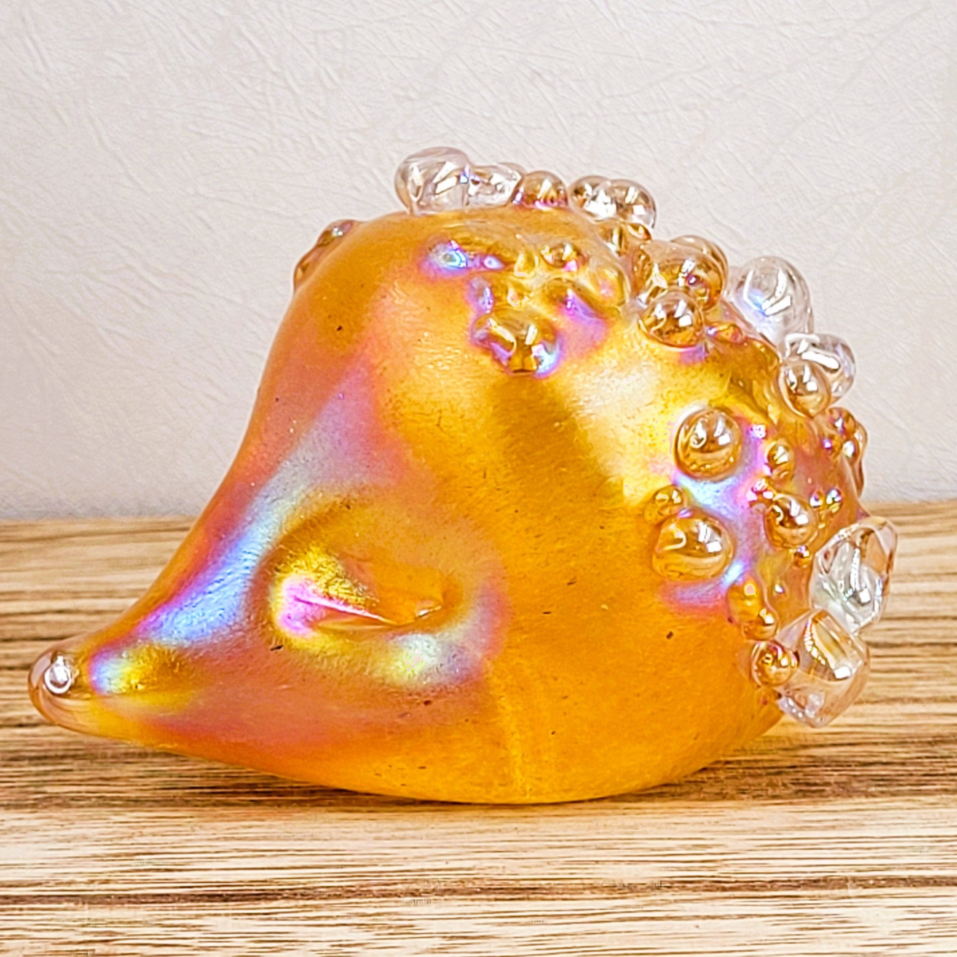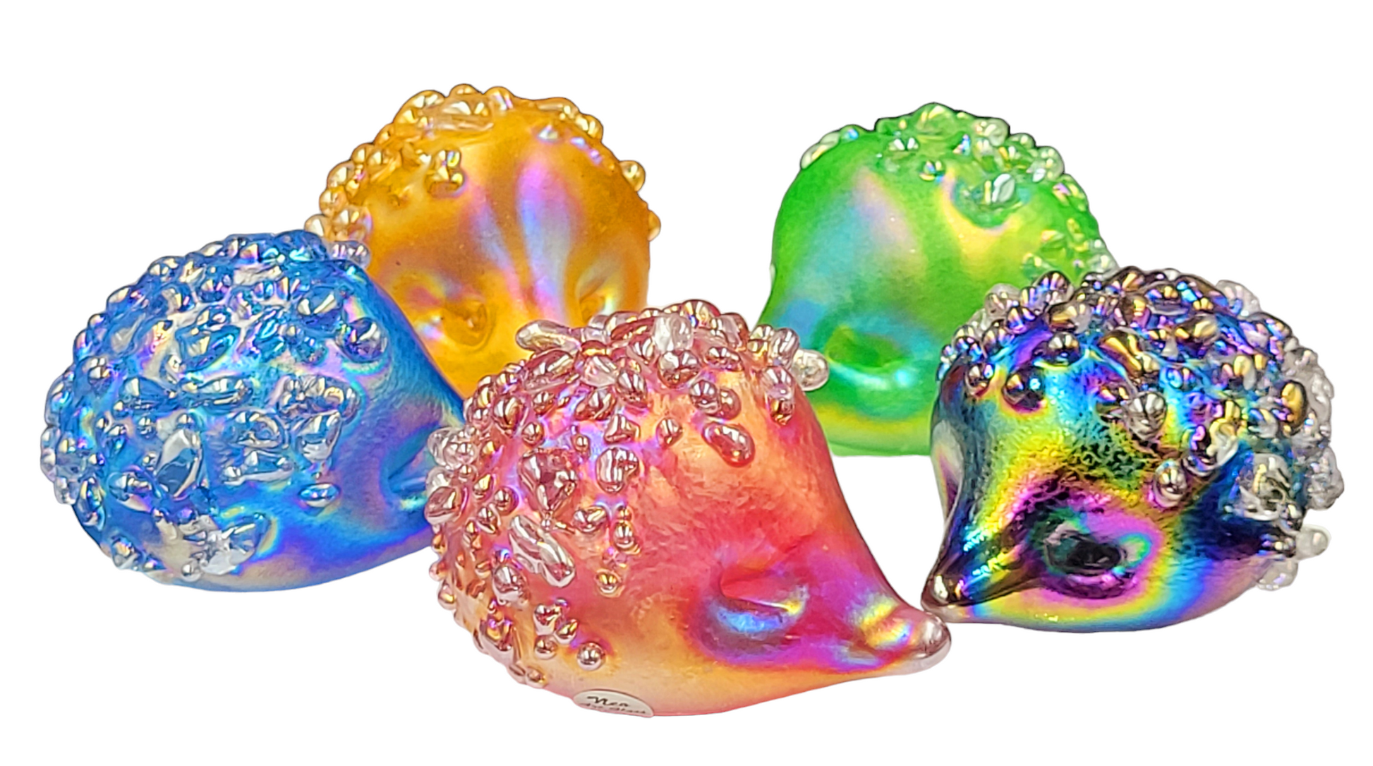 Introducing our adorable handmade glass hedgehogs! Crafted with love, these little cuties come in a variety of vibrant colours and are coated with a mesmerizing iridescent glaze. With a soft felt pad base, they make the perfect desk companion, a delightful gift, or a charming addition to any collection