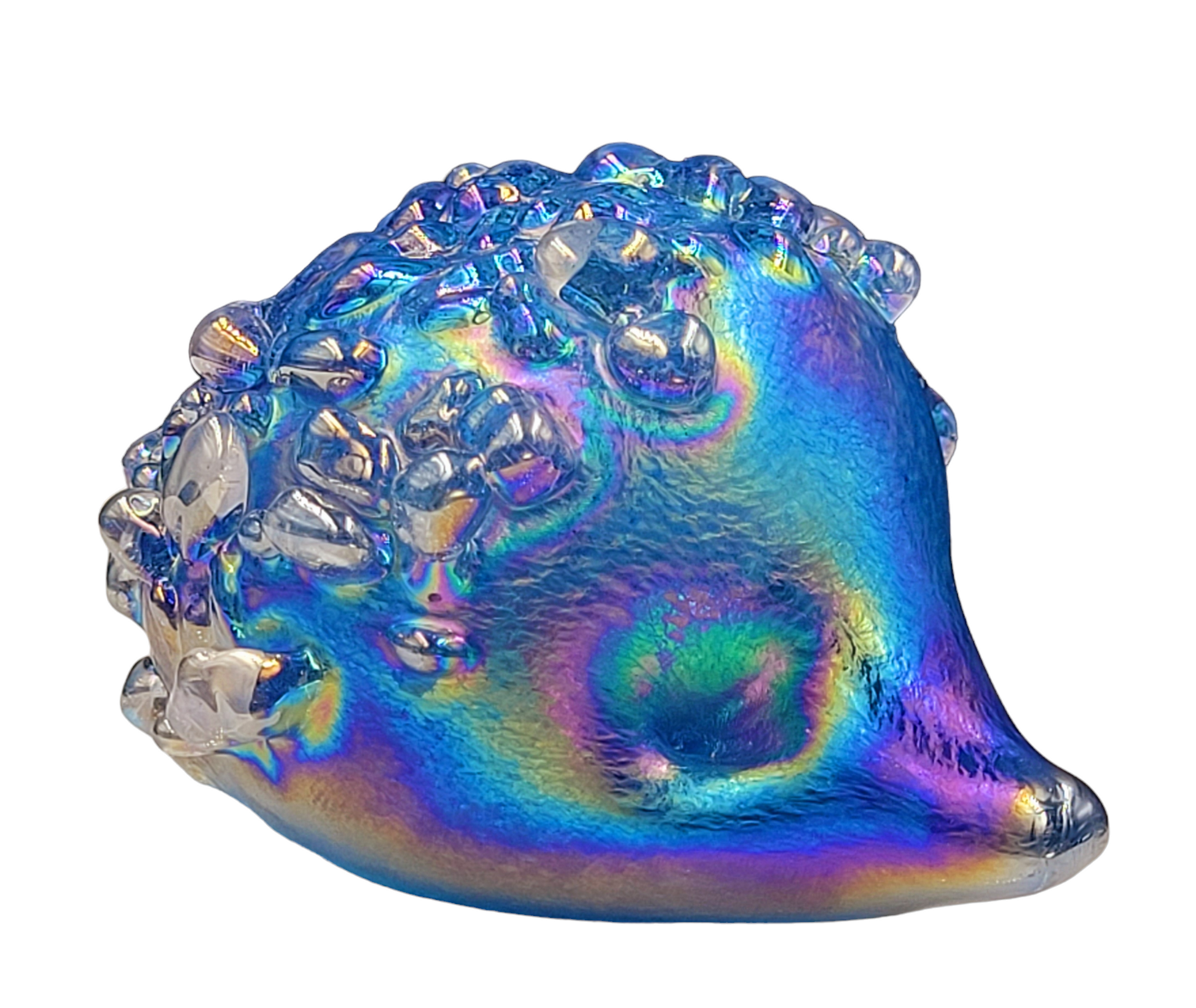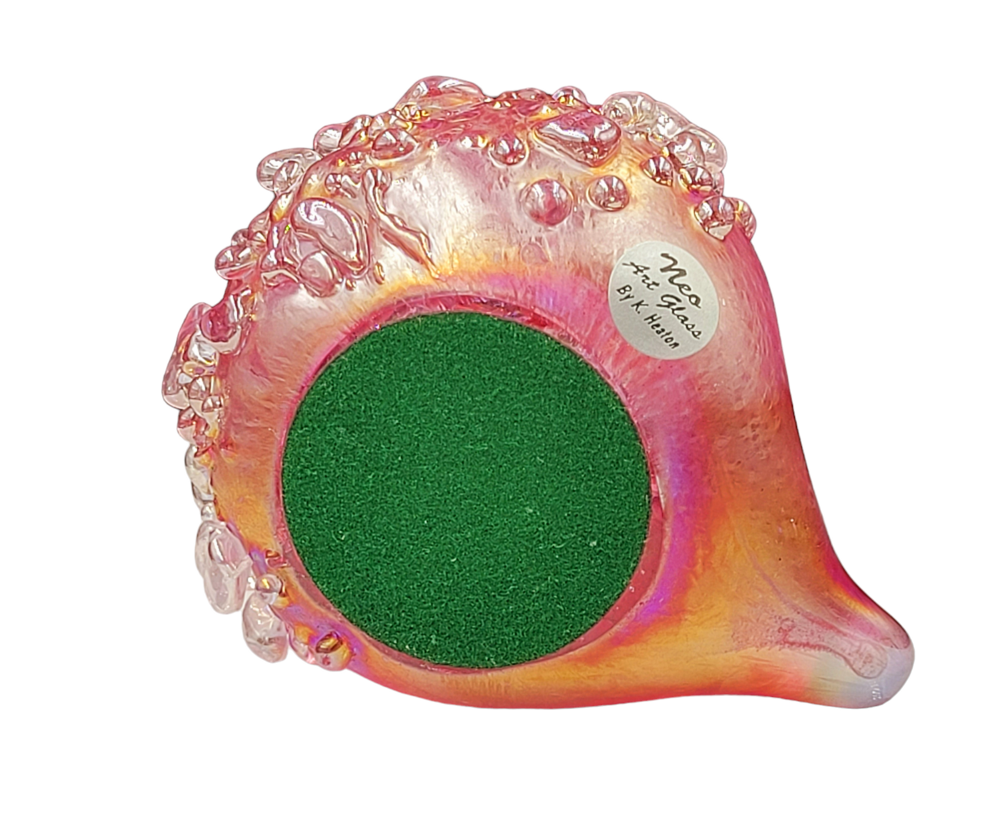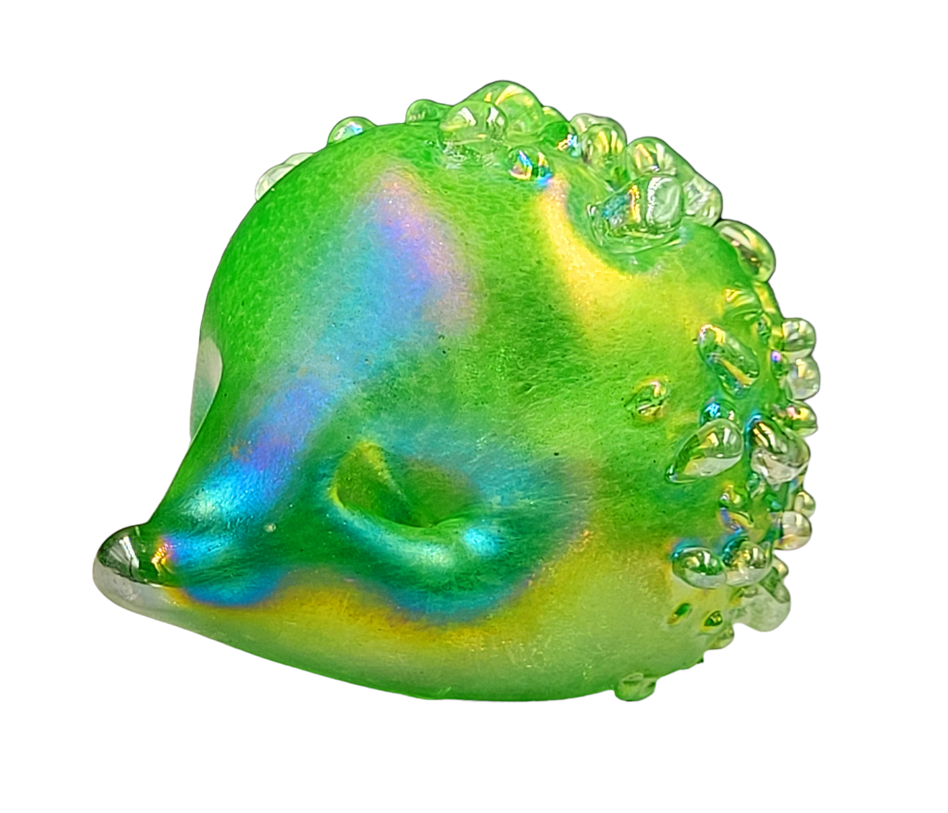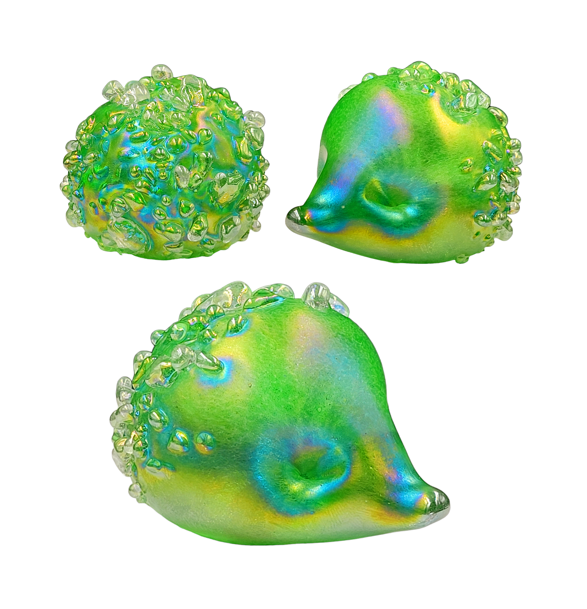 Introducing our adorable handmade glass hedgehogs! Crafted with love, these little cuties come in a variety of vibrant colours and are coated with a mesmerizing iridescent glaze. With a soft felt pad base, they make the perfect desk companion, a delightful gift, or a charming addition to any collection