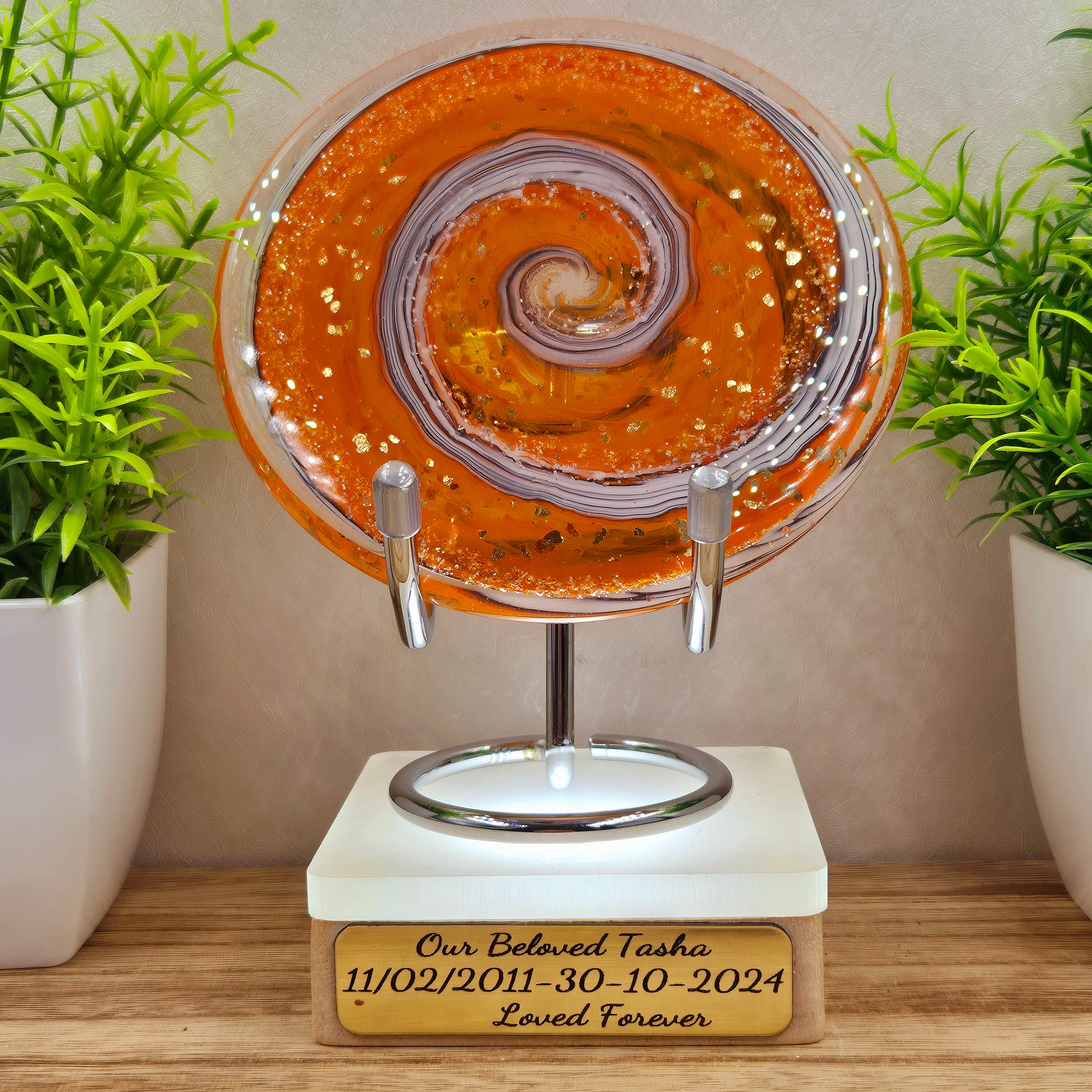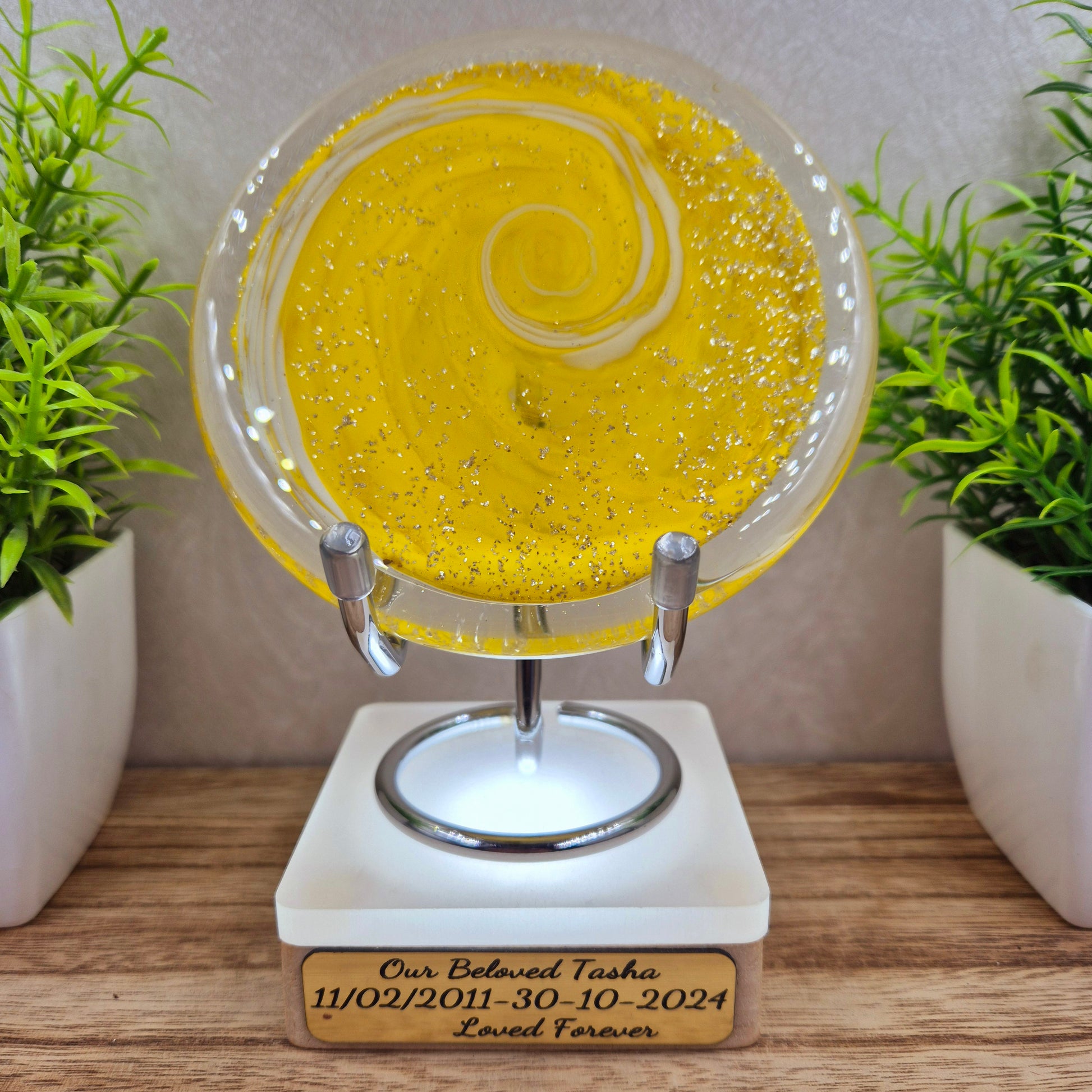 Memorial Glass Suncatcher Disk – Ashes Infused with Silver & Gold Leaf