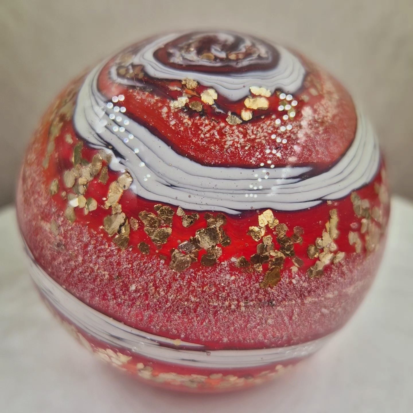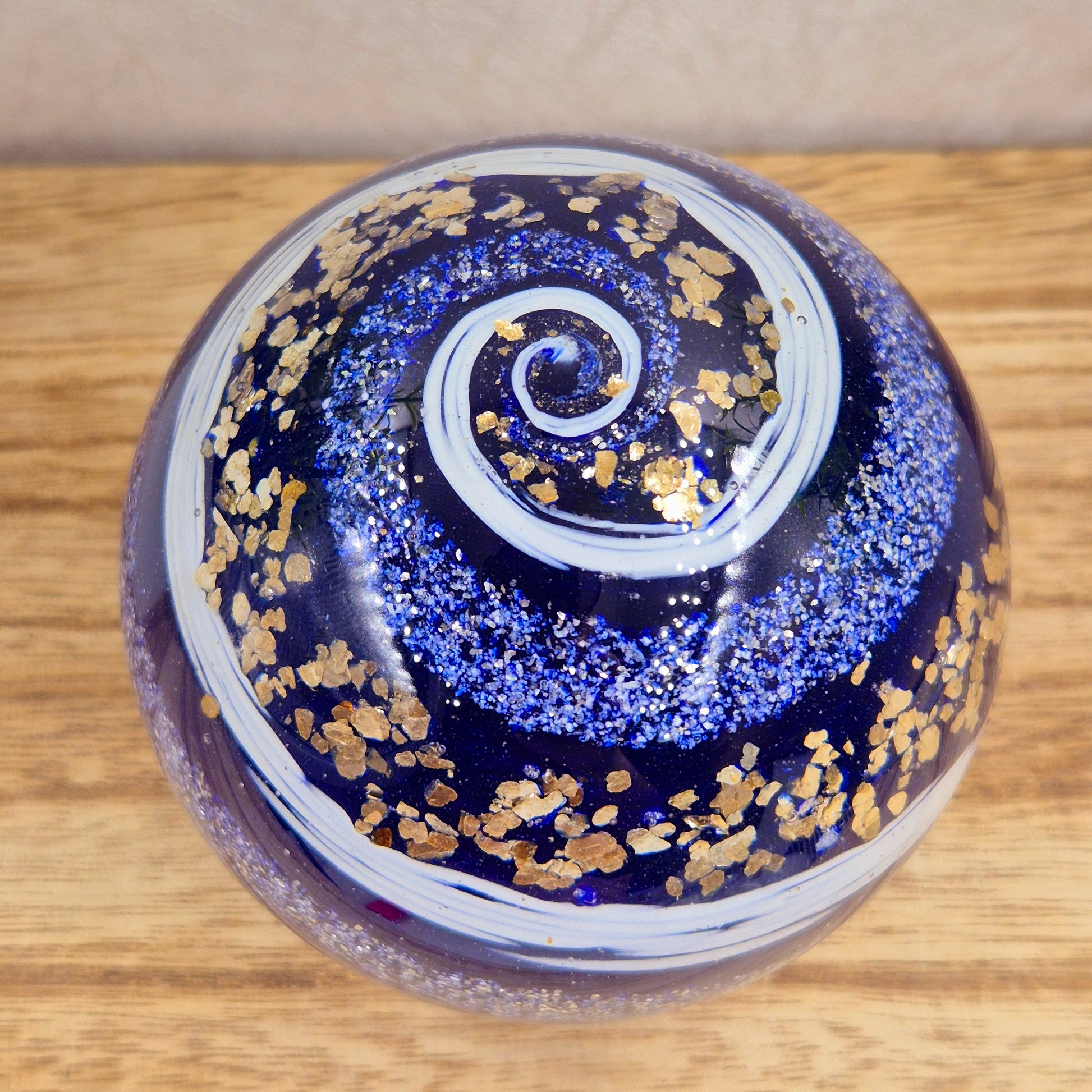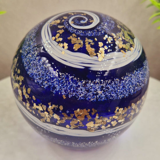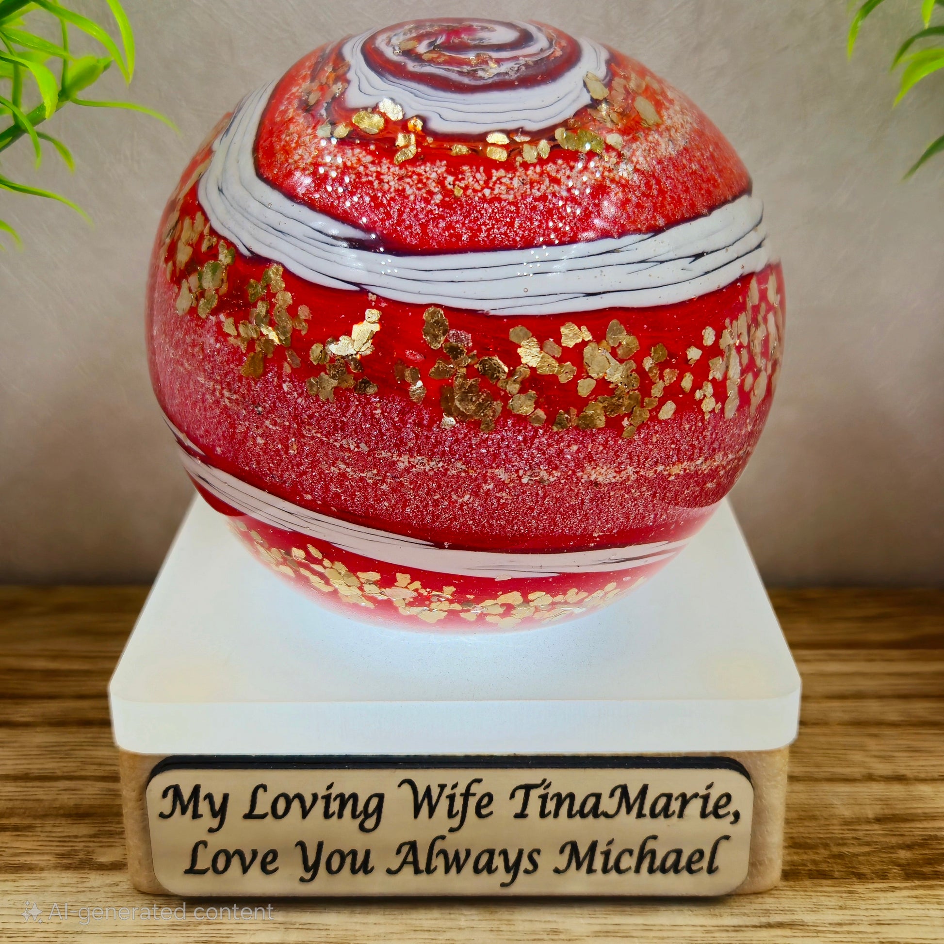 Honour a loved one's memory with this handmade memorial glass orb paperweight, beautifully infused with cremation ashes and crafted with care. Complete with an optional engraved display stand, this timeless keepsake serves as a heartfelt tribute to cherish forever.